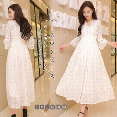 白ワンピース マキシワンピ 7分袖 レース ワンピース レディース リゾート夏ロング丈 ホワイト パーティードレス 結婚式 大人 女性 謝恩会 Y Fairyhouse 通販 Yahoo ショッピング